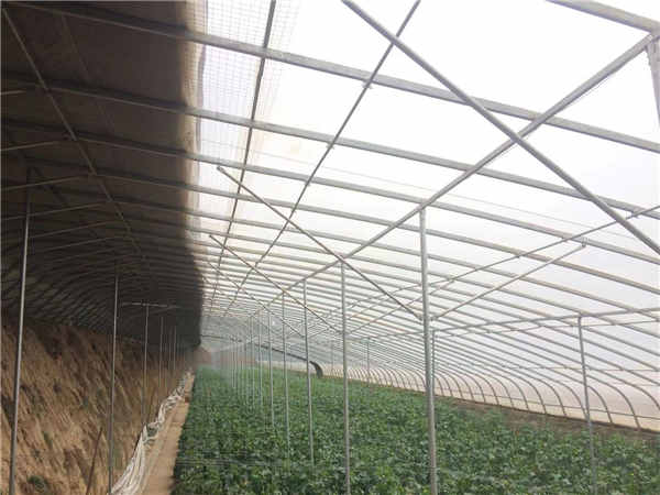 日光溫室,又分為半坡溫室和拱,是北方特色的溫室,它的分類比較多,其中保暖比較好的屬于后墻和2側山墻都是土墻的溫室,因為它白天靠3面墻蓄熱,晚上釋放熱能。它的骨架現在流行用橢圓管,有的用幾字鋼。